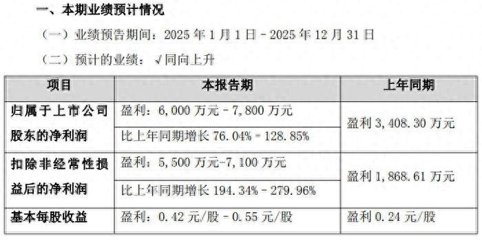 2026 年 1 月 23 日,深圳市亿道信息股份有限公司(证券简称:亿道信息,证券代码:001314)发布 2025 年度业绩预告,公司全年经营业绩实现同向大幅上升,归属于上市公司股东的净利润、扣除非经常性损益后的净利润及基本每股收益均较上年同期实现显著增长。